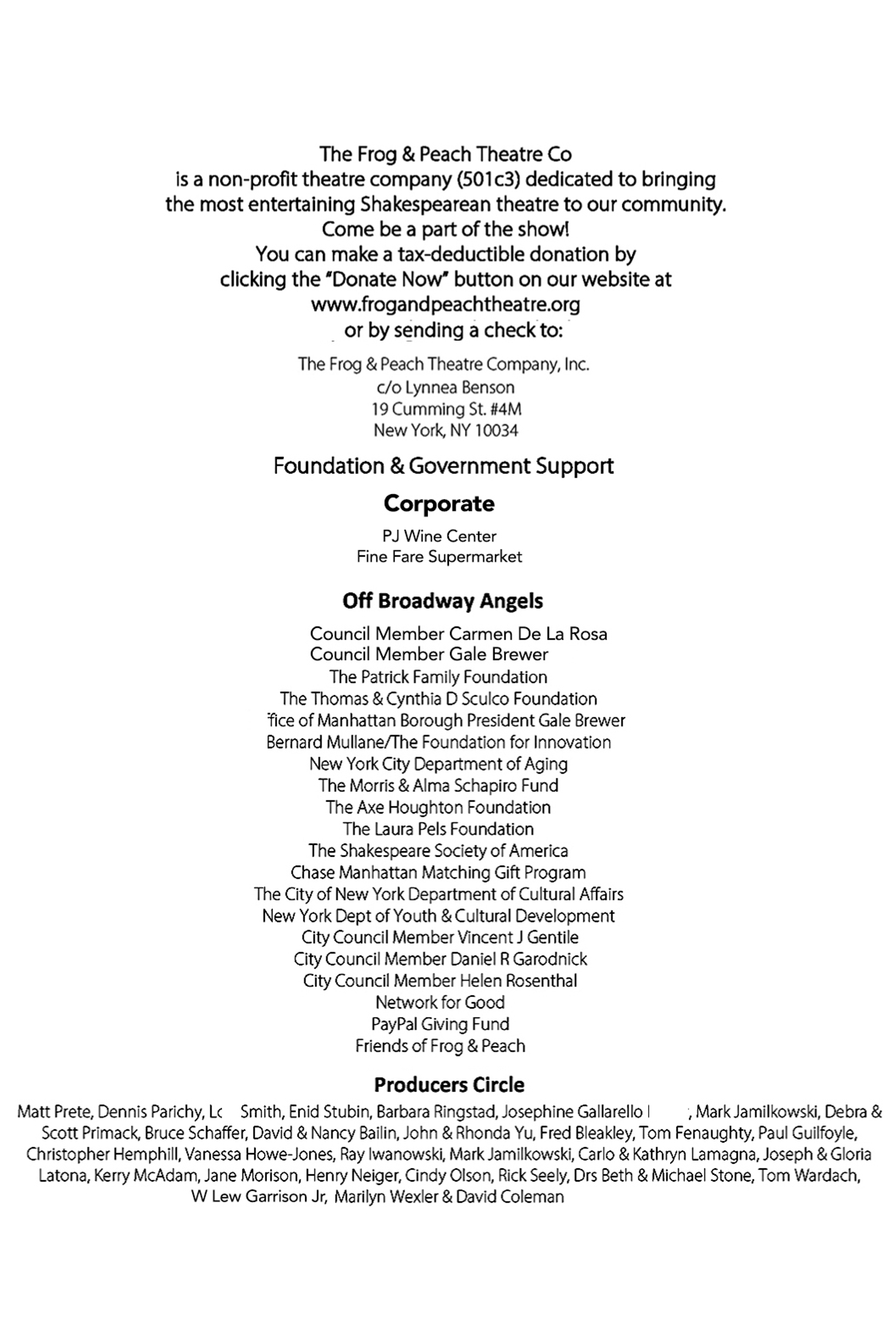 Frog & Peach Theatre Co Inc